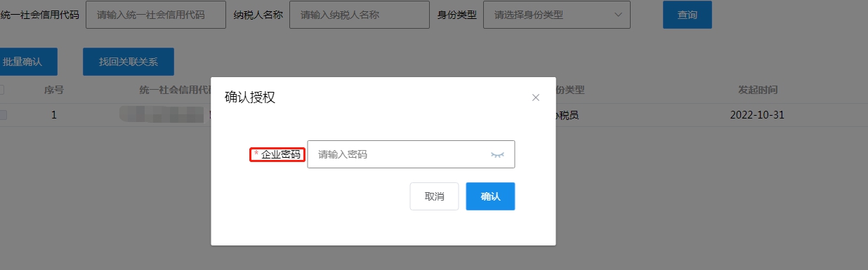 提交成功后请稍等片刻或直接点击“查询”按钮进行查询,系统会将本账户手机号之前关联的企业展示出来,如需要继续为该企业办税,请点击“确认”按钮进行关联关系确认。